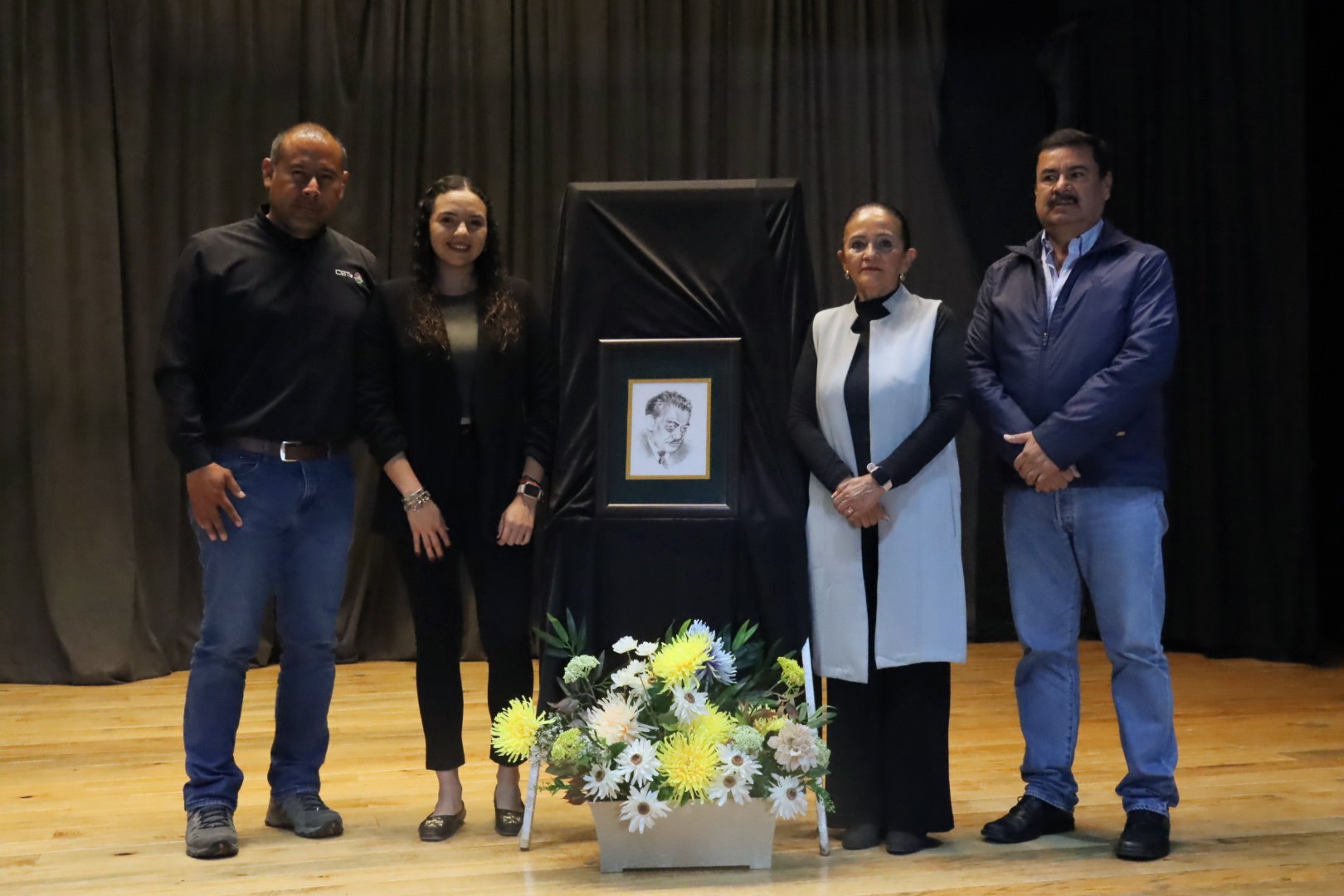 La regidora Marisol Mendoza Pinto, en representación de la presidenta municipal Magali Casillas Contreras; acompañada por Aurora Cecilia Araujó Álvarez, regidora; Samuel Villalvazo Solano, jefe de Cultura; y Antonio Lara, director del Centro de Bachillerato Tecnológico Agropecuario (CBTA); encabezó este homenaje.
