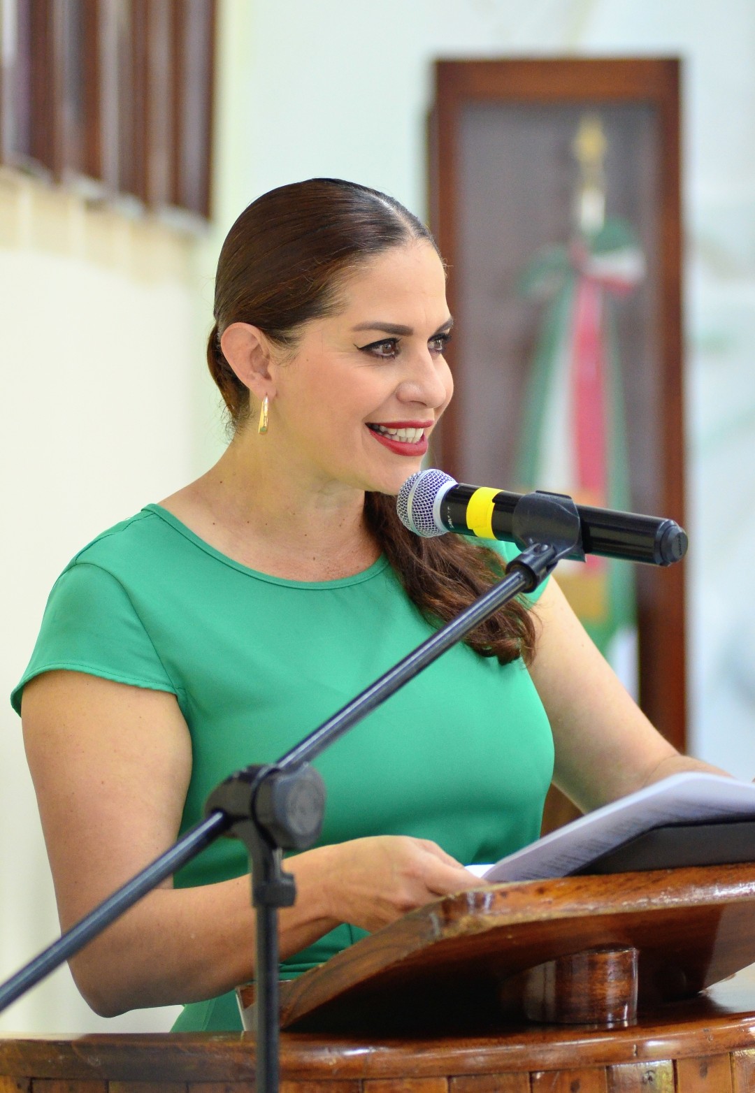 Luego de la lectura del orden del día por la secretaria general Karla Cisneros Torres, los honores a la bandera y la entonación del himno nacional mexicano a cargo del cuerpo de seguridad pública, la alcaldesa dirigió a los presentes el mensaje oficial.