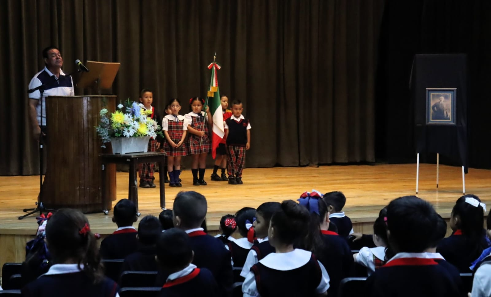 Para finalizar, las autoriades municipales presentes en el Auditorio “Consuelito Velázquez” de Casa de la Cultura, invitaron a los alumnos del kínder “Tomás Escobedo Barba”, a participar en la colocación de la ofrenda floral en honor a don Eustaquio Mendoza.