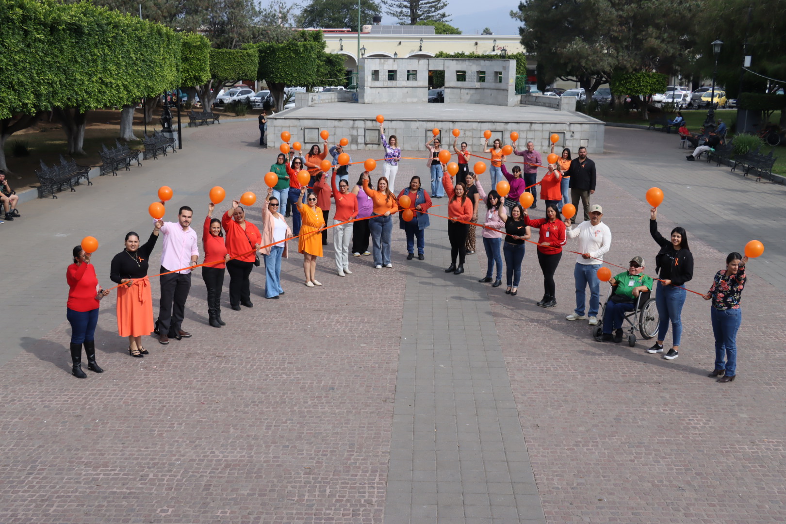 Por esta razón, y refrendando el compromiso con las mujeres del municipio, compañeras y compañeros del gobierno municipal, encabezados por la regidora Marisol Mendoza Pinto, formaron un lazo representativo a esta fecha y leyeron el pronunciamiento “Juntas y Juntos por la Eliminación de las Violencias contra las Mujeres”.
