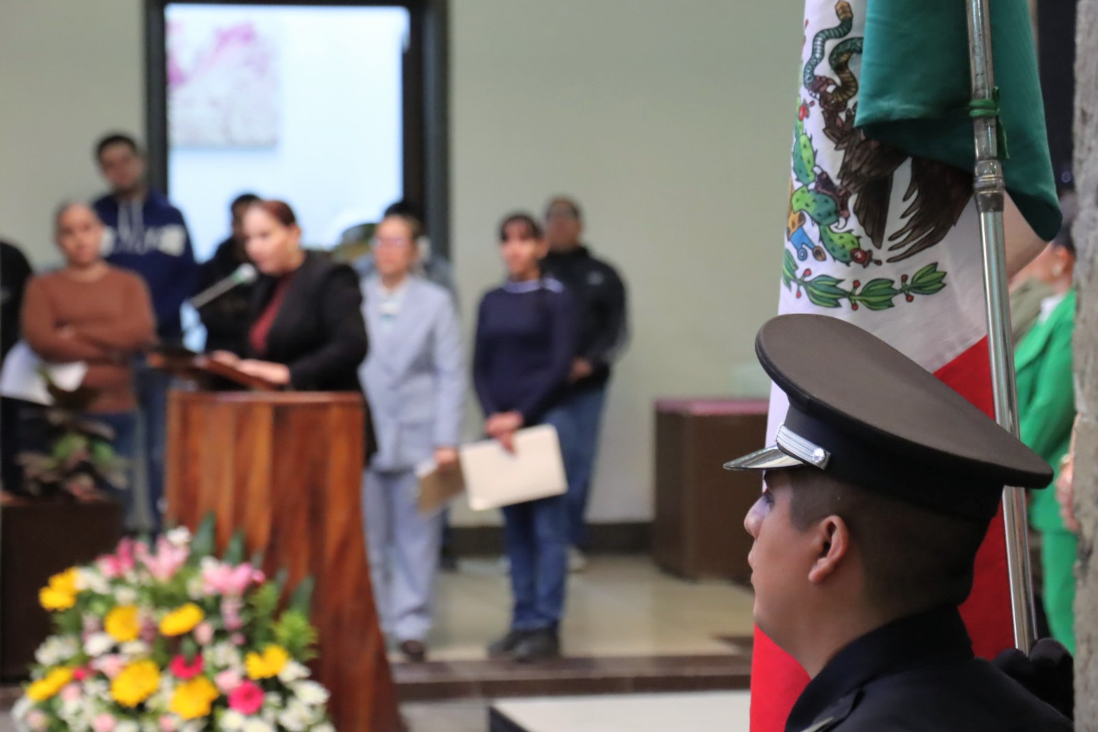 Dijo que el verde, el blanco y el rojo no son sólo matices, son el eco de esperanza, la columna vertebral de los ideales y la sangre de la justicia que corre por las venas de los mexicanos. “Ante nuestra bandera, renovamos hoy nuestra lealtad a la paz, al orden y a la soberanía que nos define como país”.