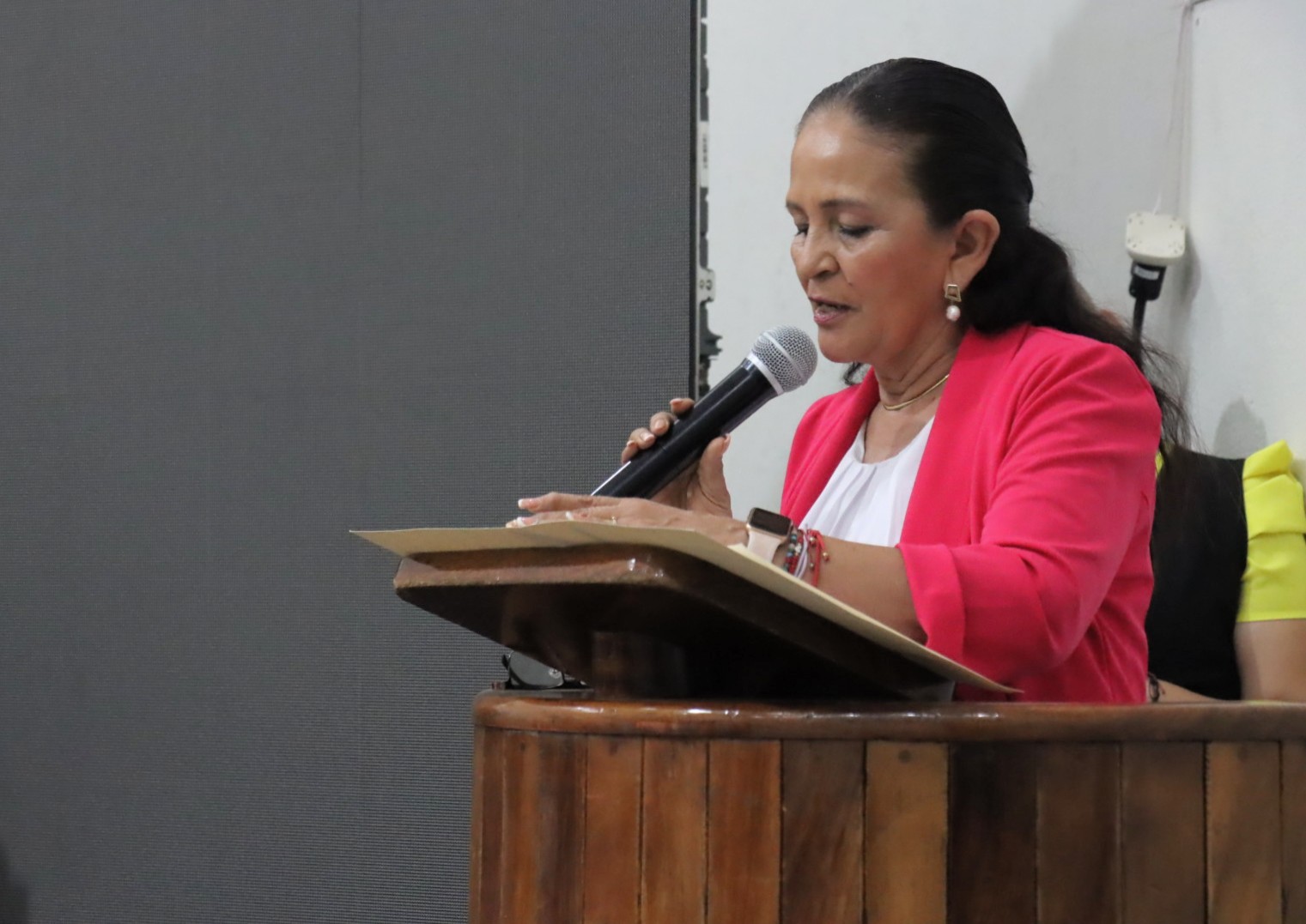 El presídium estuvo integrado por Marisol Mendoza Pinto, regidora presidenta de la Comisión Edilicia de Cultura, Educación y Actividades Cívicas, en representación de Magali Casillas Contreras, presidenta municipal de Zapotlán el Grande; Karla Cisneros Torres, secretaria general de gobierno; Roberto Álvarez Magallón, en representación de José Martín Hernández Álvarez, delegado regional de la Secretaría de Educación Jalisco; y Rubén Alejandres Ayala, en representación de Osvaldo Montañez Silva, encargado de despacho en el cargo vocal ejecutivo de la 19 Junta Distrital Ejecutiva del INE en Jalisco.