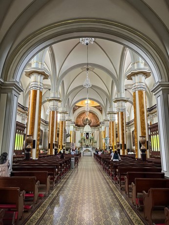 En el interior destacan seis retablos neoclásicos dedicados a la Virgen del Rosario, el Sagrado Corazón, la Piedad, la Divina Providencia, la Virgen de Guadalupe y San José, patrono de Zapotlán desde 1749.