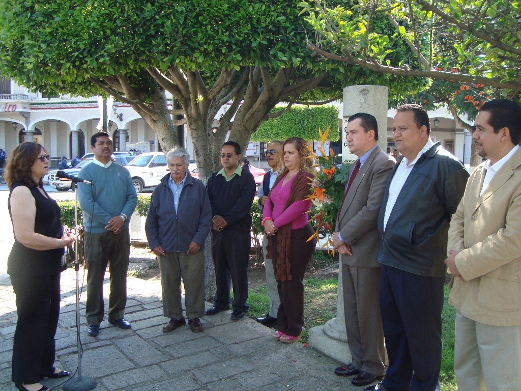 Los regidores Ana Isabel Oceguera Cortés, Jesús Anaya Trejo, Alejandro Federico Medina del Toro, Raúl Novoa López, Leónides Antonio López Vázquez, integrantes del Cabildo; junto con Jaime Cuevas Godínez, encargado de Casa de la Cultura; e invitados especiales, escucharon atentos la semblanza del ilustre benefactor.