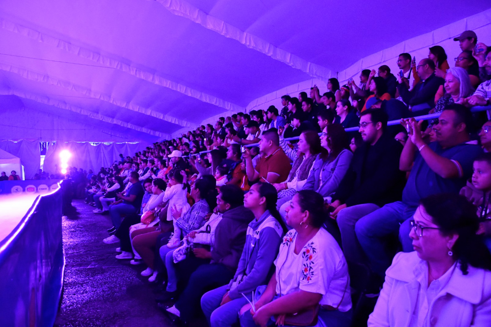 CIUDAD GUZMÁN, JALISCO. 16 DE DICIEMBRE DE 2024 (CS). Con la presencia de la presidenta municipal de Zapotlán el Grande, Magali Casillas Contreras “Nevalandia” abrió sus puertas a las familias zapotlenses con una gala de inauguración que contó con la presentación de la cantante Valenza Ley y Michel Vega al piano, así como patinadores profesionales de la compañía “Ice Theater”, quienes ofrecieron una demostración de patinaje artístico sobre hielo.