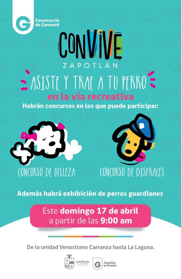 Caminata, exhibición de perros guardianes y concursos de belleza y disfraces caninos, son parte de las actividades que el Gobierno Municipal de Zapotlán el Grande a través de la Coordinación de Construcción de Comunidad organiza para este próximo domingo 17 de abril, en la Vía Recreativa Convive Zapotlán.