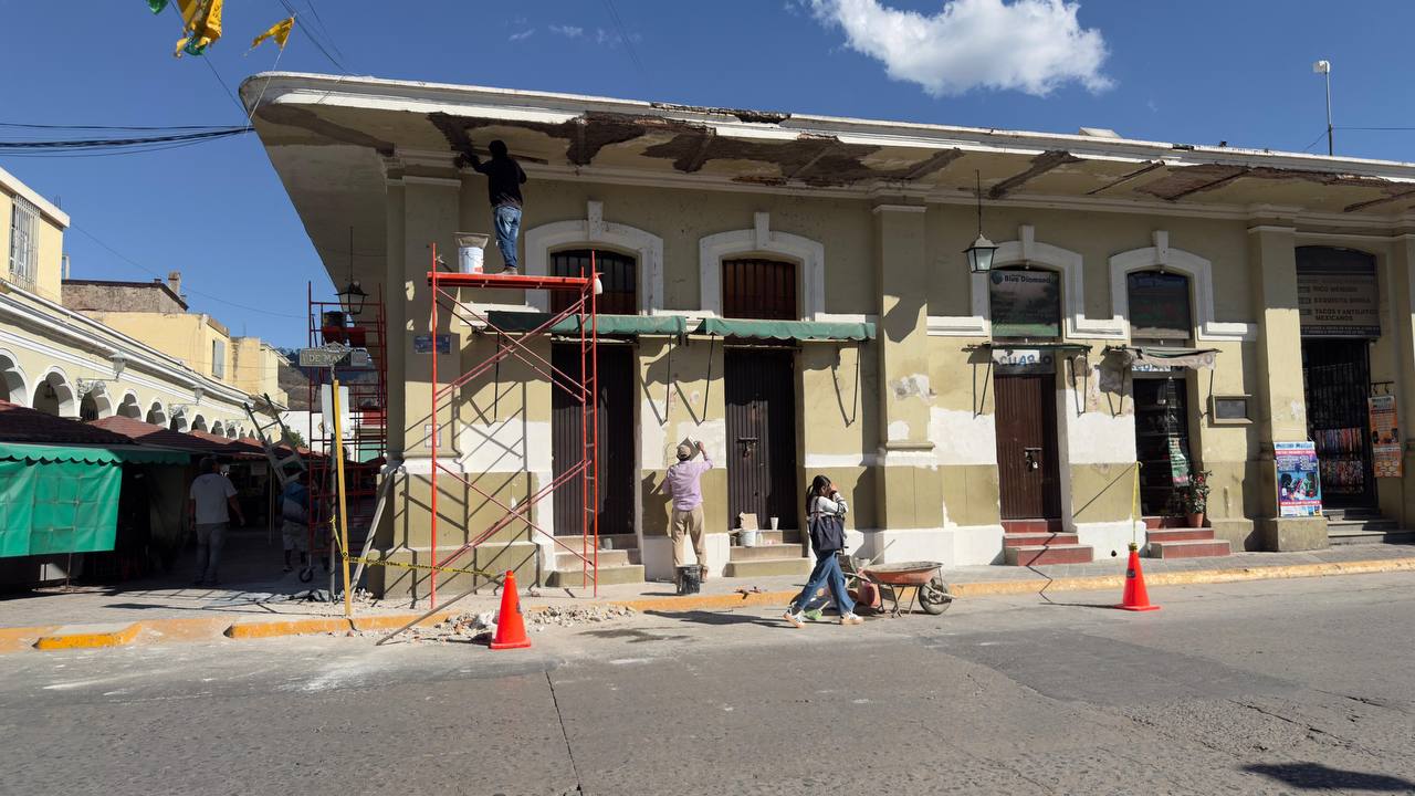 El proyecto contempla la rehabilitación de aplanados en muros y plafones del inmueble, ubicado en la calle Marcos Gordoa esquina con Primero de Mayo, con el objetivo de mejorar sus condiciones físicas, reforzar la seguridad estructural y dignificar este espacio público de gran tradición en el municipio.