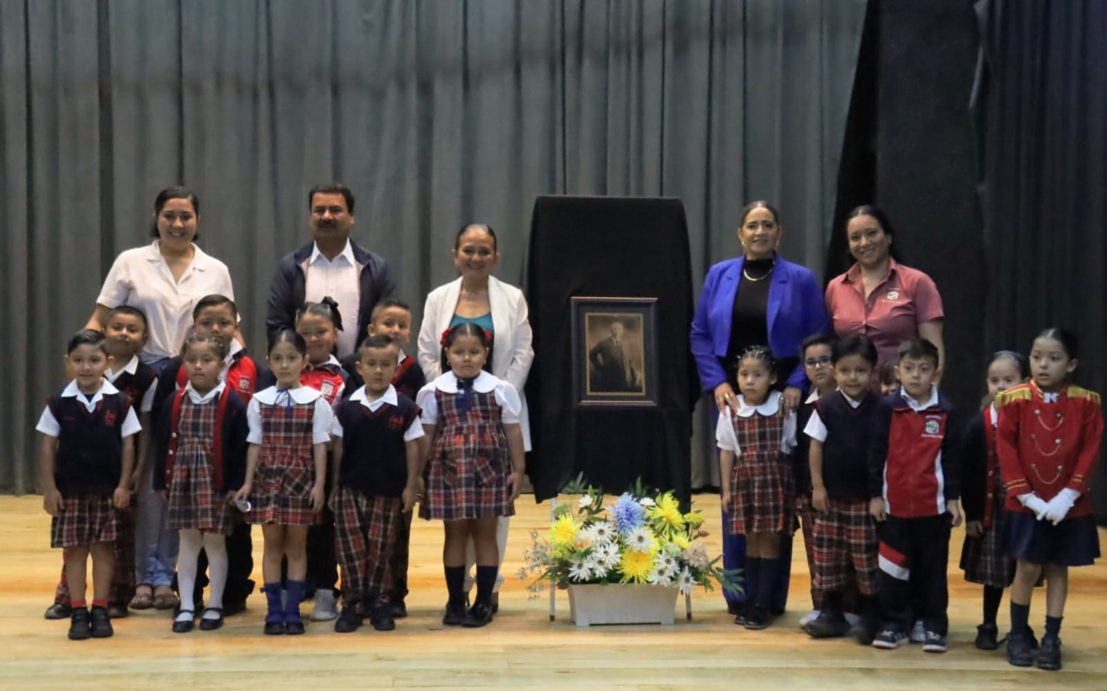 Para finalizar, las autoriades municipales presentes en el Auditorio “Consuelito Velázquez” de Casa de la Cultura, invitaron a los alumnos del kínder “Tomás Escobedo Barba”, a participar en la colocación de la ofrenda floral en honor a don Eustaquio Mendoza.