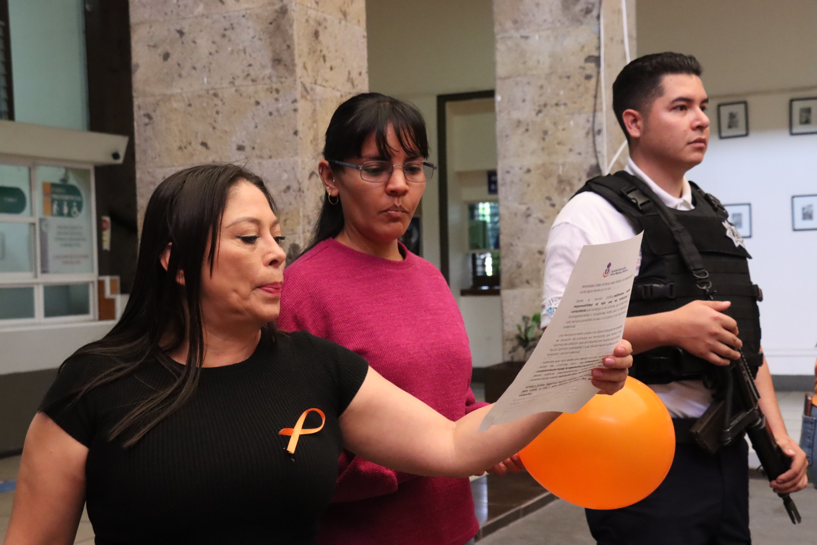 Por esta razón, y refrendando el compromiso con las mujeres del municipio, compañeras y compañeros del gobierno municipal, encabezados por la regidora Marisol Mendoza Pinto, formaron un lazo representativo a esta fecha y leyeron el pronunciamiento “Juntas y Juntos por la Eliminación de las Violencias contra las Mujeres”.