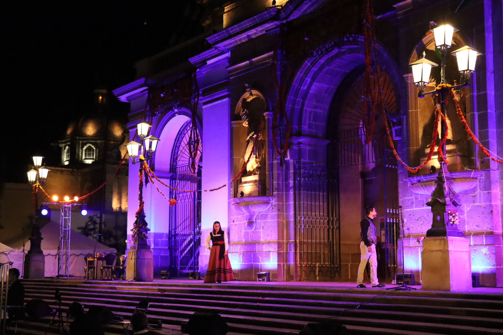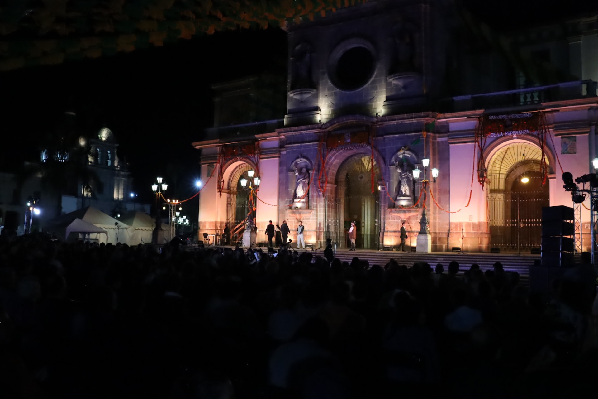 La puesta en escena, realizada al aire libre en el exterior de Catedral, reunió el talento del Estudio de Ópera, el Coro del Estado de Jalisco, la Orquesta Sinfónica para la Escena, el coro municipal de la Escuela de la Música “Rubén Fuentes”, bajo la dirección musical de Grace Echauri y la dirección escénica de Iván Ariño.