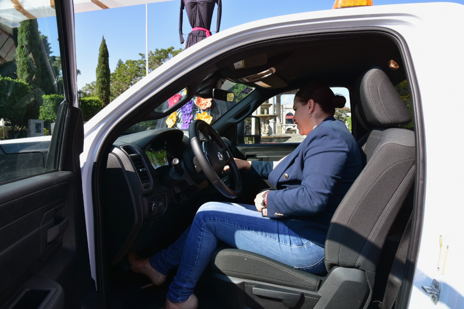 Acompañada por Federico Ochoa Castrejón, director general de Servicios Públicos; José Antonio Olivo Ramírez, jefe de Alumbrado; Georgina Romero Torres, jefa de Patrimonio; y Vicente García Juárez, contralor; la alcaldesa informó que esta nueva unidad tipo pelicano tuvo un monto de 2 millones 194 mil pesos.